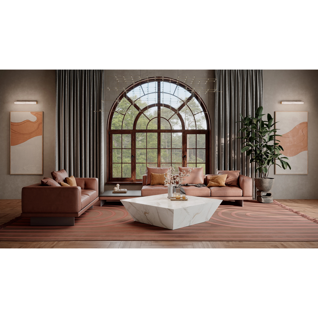 Oro is a luminous interpretation of marble — elegant, balanced, and full of warmth. An off-white background interlaced with gold, beige, and subtle grey tones gives this finish a softly layered depth, reminiscent of sunlit stone. Its gentle warmth complements neutral interiors, natural woods, and timeless textures, bringing a quiet sophistication to any space. Whether styled in a minimalist living room or a classic home, Oro exudes understated luxury. Each table is finished by hand in our Greenwich studio, revealing the porcelain’s natural movement and delicate veining. Designed to endure, this piece embodies harmony, craftsmanship, and enduring elegance.
